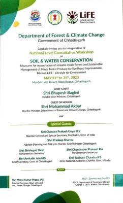 रायपुर/राज्य सरकार की महत्वाकांक्षी ‘नरवा विकास योजना’ के तहत वन एवं जलवायु परिवर्तन विभाग के तत्वाधान में नवा रायपुर स्थित मेफेयर लेक रिसॉर्ट में आज 23 से 25 मई तक ‘मृदा एवं जल संरक्षण’ विषय पर तीन दिवसीय राष्ट्रीय परामर्शी कार्यशाला का आयोजन किया गया है। कार्यशाला में 23 मई को शाम 6 बजे मुख्यमंत्री श्री भूपेश बघेल मुख्य अतिथि के बतौर शामिल होंगे। वन मंत्री श्री मोहम्मद अकबर कार्यक्रम की अध्यक्षता करेंगे। इस तीन दिवसीय राष्ट्रीय कार्यशाला में देशभर से वन विभाग के अधिकारी, केंद्रीय टीम और विशेषज्ञ प्राकृतिक संसाधनों को संरक्षित एवं संवर्धित करने के संबंध में परिचर्चा करेंगे।