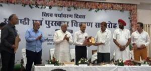 रायपुर/ छत्तीसगढ़ पर्यावरण संरक्षण मण्डल को 05 जून विश्व पर्यावरण दिवस के अवसर पर तीन विश्व रिकार्ड प्राप्त हुए। इनमें गोबर पेंट से 3600 स्क्वैयर फीट की कैनवास पेंटिंग बनाये जाने पर लिमका बुक ऑफ वर्ल्ड रिकार्ड, एक दिन में 12 लाख 38 हजार 116 पर्यावरण संरक्षण की शपथ लिये जाने पर स्टार बुक ऑफ वर्ल्ड रिकार्ड और वर्ल्ड रिकार्ड बुक की ट्राफियॉं व प्रमाण-पत्र मंत्री श्री मोहम्मद अकबर द्वारा मण्डल के अध्यक्ष श्री सुब्रत साहू को प्रदान किए।