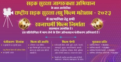 रायपुर/ छत्तीसगढ़ पुलिस द्वारा सड़क सुरक्षा अभियान चलाया जा रहा है। इसके अंतर्गत अब लघु फिल्मों के जरिए भी जन जागरूकता के प्रयास किए जाएंगे। इसके लिए प्रदेश के रचनाधर्मी लोगों को सड़क सुरक्षा पर लघु फिल्म बनाने के लिए प्रेरित करते हुए राष्ट्रीय सड़क सुरक्षा लघु फिल्म महोत्सव 2023 के अंतर्गत प्रविष्टियां आमंत्रित की गई हैं।
