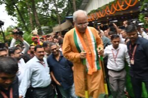 रायपुर। हरेली तिहार के लिए मुख्यमंत्री निवास को पूरी तरह ग्रामीण परिवेश से सजाया गया था। जहां चारो-ओर छत्तीसगढ़ी संस्कृति की छटा दिख रही थी। छत्तीसगढ़ी संगीत, लोकनृत्य, पारंपरिक गड़बा बाजा, राउत नाचा, गेड़ी नृत्य, रहचुली और विभिन्न छत्तीसगढ़ी पकवानों और व्यंजनों के आनंद के साथ मुख्यमंत्री निवास में मौजूद लोग उत्साह के साथ हरेली में शामिल हुए। इसके साथ-साथ पशुधन विकास विभाग द्वारा विभिन्न डेयरी उत्पादों तथा पशु आहार पर आधारित प्रदर्शनी लगाई गई। परंपरागत कृषि उपकरणों का स्टॉल लोगों को खूब भाया और लोग खेती-किसानी के पुराने दिनों को याद करने लगे। इस अवसर पर लोक कलाकारों द्वारा राउत नाचा और गेड़ी चढ़कर नृत्य की प्रस्तति भी दी गई। इसे लोगों ने खूब सराहा।