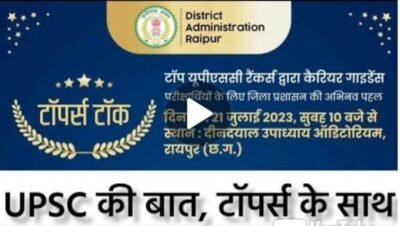 कलेक्टर डॉ. सर्वेश्वर नरेन्द्र भुरे ने इस बारे में बताया कि जिला प्रशासन द्वारा छत्तीसगढ़ में प्रतियोगी परीक्षाओं की तैयारी कर आईएएस, आईपीएस जैसे पदों पर चयनित होने की इच्छा रखने वाले परीक्षार्थियों को प्रोत्साहित करने के लिए 21 जुलाई को टॉपर्स टॉक आयोजित की जा रही है। दीनदयाल उपाध्याय ऑडिटोरियम में सुबह 10 बजे से होने वाली इस टॉपर्स टॉक में स्थानीय प्रतियोगियों को चयनित टॉपर्स से यूपीएससी क्रेक करने की टिप्स मिलेंगी। यूपीएससी की सिविल सर्विसेस परीक्षा को क्रेक करने के लिए पढ़ने के तरीके, पढ़ने का सिलेबस, समय प्रबंधन, दैनिक दिनचर्या से लेकर मनोरंजन, खाने पीने से लेकर अन्य सभी विषयों पर टॉपर्स के सुझाव स्थानीय प्रतिभागियों को मिलेंगे।