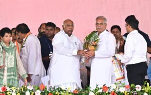 इस मौके पर श्री खड़गे ने कहा कि छत्तीसगढ़ की सरकार दलितों की, गरीबों की, पिछड़ों की और किसानों की सरकार है। गांधी जी यह कहते थे कि मैं ऐसे भारत का निर्माण करना चाहता हूँ जहाँ गरीब से गरीब आदमी भी महसूस करे कि यह देश उसका है। इसी भावना के अनुरूप छत्तीसगढ़ में कार्य किया गया। एक जमाना था जब बहुत कम धान किसानों से खरीदा जाता था। इस साल एक लाख सात हजार मीट्रिक टन धान खरीदा गया है। 19 लाख किसानों का ऋण माफ कर दिया गया। राजीव गांधी किसान न्याय योजना के माध्यम से किसानों को फसल का उचित मूल्य मिला। इंग्लिश मीडियम स्कूल आरंभ किये गये। लघु वनोपज हम लोग खरीद रहे हैं। आदिवासी भाईबहनों को वनाधिकार दिया गया। श्री खड़गे ने कहा कि हमने बेरोजगारी भत्ता बढ़ाकर 2500 रुपए कर दिया। केंद्र सरकार ने भी छत्तीसगढ़ के मिलेट मिशन की बहुत तारीफ की।