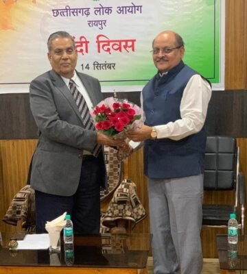 रायपुर/ छत्तीसगढ़ लोक आयोग, रायपुर में आज हिंदी दिवस के अवसर पर लोकायुक्त न्यायमूर्ति श्री टी.पी. शर्मा की अध्यक्षता में कार्यक्रम आयोजित किया गया। कार्यक्रम में कार्यालय के अधिकारी-कर्मचारियों की सहभागिता रही और उन्होंने सभी अधिकारी-कर्मचारियों को हिन्दी दिवस की शुभकामनाएं दी।