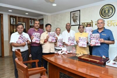 रायपुर/ मुख्यमंत्री श्री भूपेश बघेल ने आज यहाँ अपने निवास कार्यालय में छत्तीसगढ़ राज्य सहकारी बैंक ( अपेक्स बैंक ) की स्मारिका ‘छत्तीसगढ़ की सहकारिता: नई राहें-नये कीर्तिमान’ का विमोचन किया । स्मारिका में राज्य सरकार की वर्ष 2019 से 2023 तक विगत पांच वर्षों के कार्यकाल में सहकारिता के क्षेत्र में अर्जित की गयी विशिष्ट उपलब्धियों का उल्लेख किया गया है । मुख्यमंत्री ने बैंक के पदाधिकारियों को बधाई एवँ शुभकामनाएं दी ।
