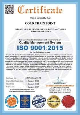 *छत्तीसगढ़ देश का दूसरा राज्य जहां कोल्ड चैन पॉइंट्स को मिला सर्टिफिकेट*