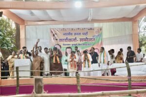 कुनकुरी। कांग्रेस ने पिछले चुनाव में अपने जनघोषणा पत्र में लोक लुभावन वादे कर जनता से खूब वोट बटोरा पर सत्ता में बैठते ही लोगों से खूब छलावा किया, खूब ठगा, खूब धोखाधड़ी की। प्रदेश की जनता द्वारा दिए गए भारी जनादेश का अपमान किया। जिसका करारा जवाब आप सभी ने विधानसभा चुनाव में दिया है और अब लोकसभा में कांग्रेस को खाता खोलने भी नहीं देना है. कांग्रेस को उखाड़ फेंकना है। कुनकुरी में शनिवार को आयोजित विधानसभा स्तरीय कार्यकर्ता सम्मेलन में मुख्यमंत्री विष्णुदेव साय ने ये बात कही।