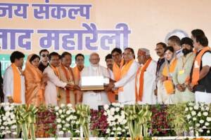 प्रधानमंत्री श्री मोदी ने कहा, तुष्टिकरण और वोट बैंक की राजनीति कांग्रेस के डीएनए में है| हमारी प्राथमिकता गरीब, युवा, महिला और किसानों का कल्याण है| कांग्रेस ने 60 साल तक गरीबी हटाओ का नारा दिया और अपने नेताओं के जेब भरते रहे, झूठा वादा किया| लेकिन मोदी ने झूठा सपना नहीं दिखाया बल्कि गरीबी में जी रहे 25 करोड़ लोगों को गरीबी से निकाला| हमारी नीयत सही थी, इसलिए नतीजे भी सही मिले| हमारा 10 साल का ट्रैक रिकार्ड है, हम जो कहते हैं उसे करने में कोई कमी नहीं छोड़ते|