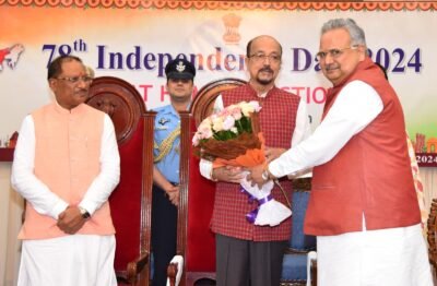 रायपुर/स्वतंत्रता दिवस के अवसर पर गुरूवार की शाम यहां राजभवन में स्वागत समारोह का आयोजन किया गया, जिसमें प्रदेश के विभिन्न क्षेत्रों की हस्तियां शामिल हुईं। राज्यपाल श्री रमेन डेका ने सभी को स्वतंत्रता दिवस की शुभकामनाएं दी। राज्यपाल श्री डेका को मुख्यमंत्री श्री विष्णु देव साय ने पुष्पगुच्छ भेंट कर स्वतंत्रता दिवस की हार्दिक बधाई और शुभकामनाएं दी। इस अवसर पर प्रथम महिला श्रीमती रानी डेका काकोटी उपस्थित थीं।