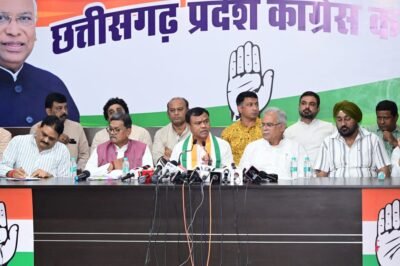 *प्रदेश कांग्रेस अध्यक्ष दीपक बैज, नेता प्रतिपक्ष डॉ. चरणदास महंत, पूर्व मुख्यमंत्री भूपेश बघेल ने पत्रकार वार्ता को संबोधित किया*