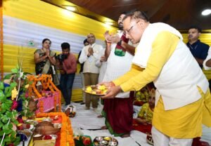 *पूजा के बाद मुख्यमंत्री ने अपने हाथों से दिया सभी बच्चों को प्रसाद*
