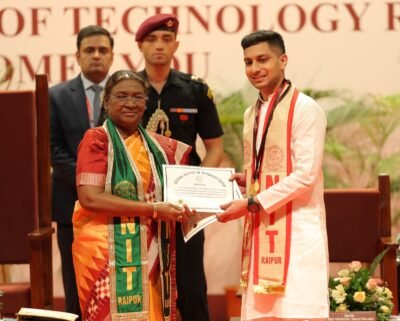 रायपुर/ राष्ट्रीय प्रौद्योगिकी संस्थान, रायपुर के लिए आज 25 अक्टूबर का दिन ऐतिहासिक रहा। देश की राष्ट्रपति श्रीमती द्रौपदी मुर्मु ने आज संस्थान के 14वें दीक्षांत समारोह में अपनी गरिमामय मौजूदगी दी और 12 होनहार विद्यार्थियों को उनकी बेहतरीन शैक्षणिक उपलब्धियों के लिए अपने हाथों से स्वर्ण पदक प्रदान किया। राज्यपाल श्री रमेन डेका, मुख्यमंत्री श्री विष्णु देव साय और केन्द्रीय राज्य मंत्री श्री तोखन साहू भी दीक्षांत समारोह में विशिष्ट अतिथि के रूप में शामिल हुए।