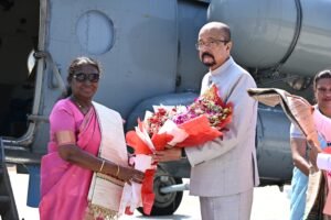 रायपुर। राष्ट्रपति श्रीमती द्रौपदी मुर्मु आज आईआईटी भिलाई के दीक्षांत समारोह में शामिल होने हेलीकॉप्टर से भिलाई पहुचीं। राष्ट्रपति श्रीमती मुर्मु का हेलीपैड पर राज्यपाल श्री रमेन डेका, मुख्यमंत्री श्री विष्णु साय, विधायक सहित अन्य जनप्रतिनिधियों ने पुष्प भेंट कर आत्मीय स्वागत किया।