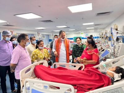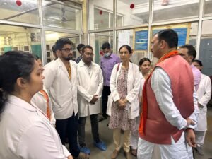 रायपुर/ स्वास्थ्य मंत्री श्री श्याम बिहारी जायसवाल ने आज रायपुर के मेकाहारा अस्पताल का निरीक्षण किया। श्री जायसवाल ने अस्पताल में भर्ती मरीजों को मिल रही सुविधाओं का जायजा लिया और मरीजों से बात कर उनके जल्द स्वस्थ होने की कामना की। श्री जायसवाल ने इस दौरान दंतेवाड़ा से आए मोतियाबिंद ऑपरेशन कराने वाले मरीजों से भी मुलाकात कर उनके स्वास्थ्य की जानकारी ली। स्वास्थ्य मंत्री ने अस्पताल के स्टाफ और चिकित्सकों से भी बात कर उन्हें बेहतर काम करने और मरीजों की उचित देख देख करने के निर्देश दिए।