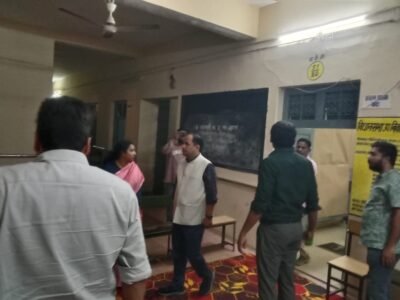 रायपुर/ जिला निर्वाचन अधिकारी एवं कलेक्टर डॉ. गौरव सिंह देर रात दक्षिण विधान सभा के मतदान केंद्रों का निरीक्षण करने निकलें। उनके साथ नगर निगम कमिश्नर श्री अभिनाश मिश्रा , जिला पंचायत सीईओ श्री विश्वदीप उपस्थित थे। कलेक्टर डॉ. सिंह ने जोन 04 के सरस्वती स्कूल स्थित मतदान केंद्र का किया निरीक्षण किया।