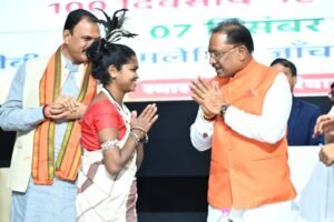 रायपुर/ एम्स रायपुर के आडिटोरियम में आज निक्षय निरामय छत्तीसगढ़ कार्यक्रम का आयोजन किया गया। इस कार्यक्रम अंतर्गत 100 दिनों तक टीबी, मलेरिया एवं कुष्ठ रोगियों की पहचान की जाएगी तथा उनका उपचार किया जाएगा। कार्यक्रम के अंतर्गत ऐसे लोगों का भी सम्मान किया गया जिन्होंने टीबी और कुष्ठ जैसी बीमारियों से लड़ाई लड़ी और आज स्वस्थ जीवन का आनंद उठा रहे हैं। इन्हीं मे से एक हैं बस्तर के तोकापाल की रहने वाली बबीता नाग जो कुछ समय पहले तक टीबी के रोग से पीड़ित थीं। इन्होंने सरकारी अस्पताल में अपनी जांच करायी और शासन की योजनाओं का लाभ लेते हुए समय पर दवाइयों और पोषण आहार का सेवन किया। इसकी वजह से बबीता आज पूरी तरह स्वस्थ हैं। बबीता ने अपने स्वस्थ होने का श्रेय मुख्यमंत्री श्री विष्णुदेव साय को दिया है जिनकी पहल की वजह से वो टीबी जैसी बीमारी के प्रति जागरूक हो सकीं और समय पर अपना इलाज कराया। मुख्यमंत्री श्री साय को धन्यवाद देने के लिए बबीता आज निक्षय निरामय छत्तीसगढ़ कार्यक्रम में उपस्थित थीं। उन्होने मुख्यमंत्री श्री विष्णुदेव साय को अपने हाथों से निक्षय निरामय सूत्र बांधा और प्रदेश में स्वास्थ्य संवर्धन के क्षेत्र में किए जा रहे कार्यों के लिए आभार प्रकट किया।