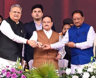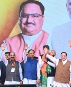 रायपुर/ देश में प्रधानमंत्री श्री नरेन्द्र मोदी और छत्तीसगढ़ में विष्णु देव साय की नेतृत्व वाली सरकार जनता की सेवा के लिए तत्पर होकर काम कर रही है। इसी का परिणाम है कि पूरे देश और प्रदेश में उत्तरोत्तर विकास हो रहा हैै। डबल इंजन की सरकार होने की वजह से लोगों को डबल लाभ हो रहा है। आज भारत विश्व की पांचवी बड़ी आर्थिक शक्ति है। अगले पांच सालों में हम दुनिया की तीसरी बड़ी अर्थव्यवस्था बनकर उभरेंगे। प्रधानमंत्री के कुशल नेतृत्व में देश के 25 करोड़ लोग गरीबी से बाहर आए हैं। केन्द्रीय स्वास्थ्य एवं परिवार कल्याण मंत्री श्री जे.पी. नड्डा ने आज रायपुर के साइंस कॉलेज ग्राउंड में आयोजित जनादेश परब कार्यक्रम में लोगों को सम्बोधित करते हुए यह बात कही। केन्द्रीय मंत्री श्री नड्डा ने कार्यक्रम में 1124 करोड़ रूपए के विभिन्न विकास कार्याें का लोकार्पण और शिलान्यास किया।