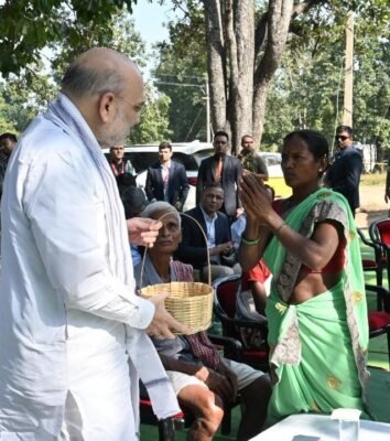 रायपुर / माओवादी आतंक से प्रभावित बीजापुर जिले के गुण्डम गांव में केन्द्रीय गृह मंत्री श्री अमित शाह ने महुआ पेड़ के नीचे चौपाल लगाकर ग्रामीणों से आत्मीयतापूर्वक खुलकर चर्चा की। उन्होंने कहा कि प्रधानमंत्री श्री नरेन्द्र मोदी की पहल पर हमने माओवादी आतंक को 31 मार्च 2026 तक समाप्त करने का लक्ष्य रखा है, जिसका परिणाम है कि आज नक्सलवाद एक छोटे से दायरे में सिमट कर रह गया है। इस मौके पर मुख्यमंत्री श्री विष्णुदेव साय एवं उपमुख्यमंत्री श्री विजय शर्मा उपस्थित थे।