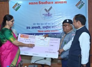 कलेक्टर एवं जिला निर्वाचन अधिकारी डॉ गौरव कुमार सिंह ने कहा कि मतदाता दिवस का आयोजन हर वर्ष के अपेक्षा इस वर्ष अलग है, क्योंकि हमारे जिला प्रशासन द्वारा पिछले एक वर्ष में दो चुनाव संपन्न कराएं है और तीसरा चुनाव कराने जा रहे हैं। रायपुर जिला प्रशासन ने राज्य निर्वाचन आयोग के मार्गदर्शन में प्रशिक्षण निर्वाचन और इत्यादि में कुछ नवाचार किए जिसकी चर्चा राष्ट्रीय स्तर पर भी हुई। इसके लिए चुनाव कार्य में लगे सारे कर्मचारी बधाई के पात्र हैं। यह पुरस्कार प्रतीकात्मक है। यदि किसी विभाग के एक कर्मचारी को यह सम्मान मिल रहा है तो यह उसके पूरे विभाग के लिए गर्व की बात है। इस कार्यक्रम एसएसपी डॉ लाल उम्मेद सिंह, जिला पंचायत सीईओ श्री विश्वदीप, सहायक कलेक्टर सुश्री अनुपमा आनंद और जिला निर्वाचन अधिकारी श्री उमाशंकर बंदे उपस्थित रहे।