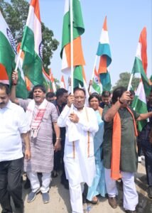 लोग हाथ में तिरंगा लेकर उत्साहपूर्वक यात्रा में शामिल हुए। यात्रा के दौरान ‘भारत माता की जय’, ‘वंदे मातरम्’ और ‘जय हिंद’ के नारों से पूरा वातावरण गूंज उठा।