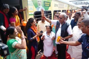 इस अवसर पर स्टेशन परिसर में भारी संख्या में श्रद्धालु उपस्थित रहे और “जय श्रीराम” के उद्घोष से सम्पूर्ण वातावरण भक्तिमय हो उठा।