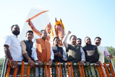 रायपुर/मुख्यमंत्री श्री विष्णु देव साय आज बलिदान दिवस पर आयोजित श्रद्धांजलि समारोह में शहीद वीर नारायण सिंह की जन्मभूमि एवं कर्मभूमि कसडोल विकासखंड के ग्राम सोनाखान पहुंचे। उन्होंने सोनाखान स्थित शहीद स्मारक में श्रद्धासुमन अर्पित किया एवं शहीद वीर नारायण सिंह के आदमकद मूर्ति पर माल्यार्पण कर उन्हें श्रद्धांजलि दी। इस दौरान मुख्यमंत्री ने शहीद वीर नारायण सिंह संग्रहालय का भी अवलोकन किया। इस अवसर पर कैबिनेट मंत्री श्री रामविचार नेताम, श्री केदार कश्यप, श्री टंकराम वर्मा, पूर्व विधानसभा अध्यक्ष गौरीशंकर अग्रवाल,पूर्व विधायक बिलाईगढ़ डॉ सनम जागड़े, शहीद वीर नारायण सिंह के वंशज राजेंद्र दीवान सहित अन्य जनप्रतिनिधिगण उपस्थित थे।