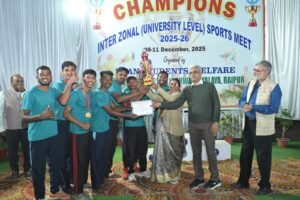 रायपुर। इंदिरा गांधी कृषि विश्वविद्यालय, रायपुर में 08 से 11 दिसम्बर 2025 तक आयोजित विश्वविद्यालयीन चार दिवसीय खेल कुम्भ का कल यहां समापन हुआ। कृषि महाविद्यालय, रायपुर के स्पार्ट्स कॉम्पलैक्स में चार दिवसीय खेल कुम्भ के समापन समारोह के मुख्य अतिथि डॉ. एस.एस. सेंगर ने विभिन्न खेल स्पर्धाओं में विजेता प्रतिभागियों को पुरस्कार एवं प्रमाण पत्र देकर सम्मानित किया। कार्यक्रम की अध्यक्षता अधिष्ठाता छात्र कल्याण डॉ. संजय शर्मा ने की। इस विश्वविद्यालयीन खेल-कूद प्रतियोगिता में इंदिरा गांधी कृषि विश्वविद्यालय के पूर्व, पश्चिम, उत्तर एवं दक्षिण जोन के अंतर्गत आने वाले समस्त महाविद्यालयों के 160 प्रतिभागी शामिल हुए। विश्वविद्यालयीन खेल कुम्भ में ईस्ट जोन 174 अंक प्राप्त कर ओवर ऑल चैम्पियन रहा, वहीं 91 अंक के साथ साऊथ जोन ओवर ऑल रनर अप रहा। सर्वश्रेष्ठ बालिका एथलीट का खिताब ईस्ट जोन की कुमारी संध्या नेताम तथा सर्वश्रेष्ठ बालक एथलीट का खिताब ईस्ट जोन के ही श्री कुनाल रावटे को प्रदान किया गया। समापन समारोह में कृषि महाविद्यालय रायपुर की अधिष्ठाता डॉ. आरती गुहे, कृषि अभियांत्रिकी महाविद्यालय के अधिष्ठाता डॉ. अजय वर्मा, निदेशक शिक्षण डॉ. ए.के. दवे, भी मौजूद थे। समापन समारोह में विभिन्न खेल स्पर्धाओं के निर्णायकगणों टीम मैनेजरों तथा आयोजन समिति के सदस्यों को भी सम्मानित किया गया। इस अवसर पर विश्वविद्यालयीन खेलकूद प्रतियोगिता में शामिल होने वाले समस्त चार जोन के खिलाड़ी टीम मैनेजर, रैफरी, शिक्षकगण अधिकारी एवं कर्मचारी उपस्थित थे। कार्यक्रम का संचालन डॉ. दीप्ती झा ने किया।