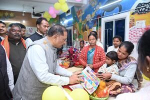 रायपुर/ मुख्यमंत्री श्री विष्णुदेव साय ने आज सामुदायिक स्वास्थ्य केंद्र फरसाबहार में आयोजित कार्यक्रम के दौरान फरसाबहार के साथ-साथ कुनकुरी एवं मनोरा में स्थापित किए गए पोषण पुनर्वास केंद्रों का शुभारंभ किया। इन तीनों पुनर्वास केंद्रों को 10-10 बिस्तरों की सुविधा के साथ प्रारंभ किया गया है। इनके शुभारंभ के साथ ही जशपुर जिले में पोषण पुनर्वास केंद्रों की संख्या 6 हो गई है। इस दौरान मुख्यमंत्री ने पुनर्वास केंद्रों में भर्ती कुपोषित बच्चों की माताओं से बच्चों के स्वास्थ्य और उनके ईलाज के बारे में जानकारी ली। मुख्यमंत्री इस मौके पर बच्चों के लिए पोषण कीट के साथ खिलौने भी प्रदान किए।