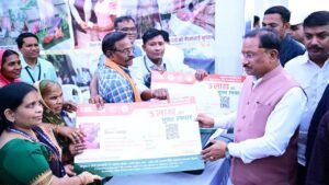 मछली पालन विभाग द्वारा ‘धरती आबा जनजातीय ग्राम उत्कर्ष योजना’ के अंतर्गत हरदी के श्री गंगाराम नेताम, भठचौरा के श्री हरिकिशन नेताम एवं हरदी (आमागांव) के श्री शिवप्रसाद जगत को मोटर साइकिल सह आईस बाक्स प्रदान किया गया। छत्तीसगढ़ राज्य बीज एवं कृषि विकास निगम विभाग ने ‘कृषक उन्नति योजना’ के अंतर्गत भदौरिया की श्रीमती रानी बाई लोनिया को हार्वेस्टर, परसदा के श्री राघव राम राजपूत एवं सोन के किसान श्री हेमलाल को स्प्रिंकलर सेट 30 पाईप विद्युत पंप प्रदान किए गए। समाज कल्याण विभाग द्वारा दिव्यांगजन हितग्राहियों में ग्राम कोरमी की श्रीमती त्रिवेणी ध्रुव, कया की श्रीमती साधना देवी नोनिया एवं पेण्डवार के श्री जीवन पोर्ते को मोटराइज्ड ट्राइसाइकिल प्रदान किया। जिला सहकारी केंद्रीय बैंक द्वारा कृषक उन्नति योजना अंतर्गत बोड़सरा के किसान श्री चितगोंविद, पासिद के श्री मनोज साहू, पौंसरा के श्री जगदेव प्रसाद सूर्यवंशी, सरकण्डा के श्री चिंतामणी पटेल, केन्दा के श्री संतोष एवं श्रीमती अनिमा को चेक का वितरण किया गया। उद्यान विभाग की नेशनल मिशन ऑन एडिबल ऑयल पाम योजना के तहत ग्राम धनगवां की श्रीमती सरोज डहरिया, रैल्हा की श्रीमती जोगन बाई को चेक का वितरण, श्रम विभाग के मुख्यमंत्री निर्माण श्रमिक मृत्यु एवं दिव्यांग सहायता योजना के तहत रहंगी के स्व. श्री विनोद ध्रुव एवं सेवार की स्व. श्रीमती संतोषी चौहान के परिजनों को 1-1 लाख रूपये का चेक प्रदान कर योजना का लाभ दिया गया।
