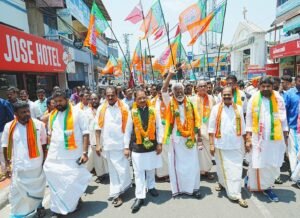 रायपुर/मुख्यमंत्री श्री विष्णु देव साय ने आज केरल दौरे के दौरान कोट्टायम जिले के चेंगन्नूर एवं अरनमुला विधानसभा क्षेत्रों में भारतीय जनता पार्टी के प्रत्याशियों के नामांकन रैलियों में शामिल होकर कार्यकर्ताओं में उत्साह का संचार किया और व्यापक जनसमर्थन जुटाया। इस दौरान उन्होंने दोनों विधानसभा क्षेत्रों में आयोजित कार्यक्रमों में बड़ी संख्या में उपस्थित कार्यकर्ताओं एवं आम नागरिकों से आत्मीय संवाद करते हुए भाजपा के पक्ष में वातावरण को मजबूत किया।