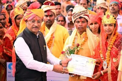 कार्यक्रम में नवदंपतियों को विवाह प्रमाण पत्र एवं उपहार सामग्री भी प्रदान की गई। इस अवसर पर उपस्थित जनप्रतिनिधियों ने भी नवविवाहित जोड़ों को शुभकामनाएं दी और योजना की सराहना की। यह आयोजन न केवल एक सामाजिक कार्यक्रम रहा, बल्कि शासन की जनकल्याणकारी सोच और समाज के कमजोर वर्गों के प्रति संवेदनशीलता का भी प्रतीक बना।
