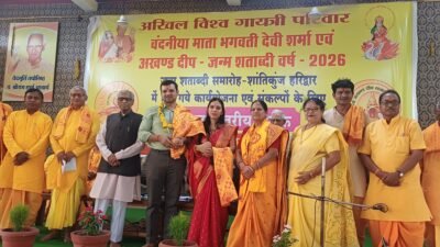 रायपुर। परम वंदनीय माता भगवती देवी शर्मा जी की जन्मशताब्दी वर्ष 2026 में अखिल विश्व गायत्री परिवार द्वारा विभिन्न कार्यक्रम आयोजित किए जाएंगे। इनमें सामूहिक गायत्री साधना, अनुष्ठान, यज्ञ, ज्योति कलश यात्राएँ, आध्यात्मिक सत्संग, श्रम साधना, योगाभ्यास और सामाजिक कार्यक्रम शामिल हैं। सबसे पहले साधना का कार्यक्रम जिसमें सवा सवा लाख का संकल्प लिया गया है उसे करना है। यह बातें हरिद्वार से पहुंचे ऋषि पुत्र सुखदेव निर्मलकर जी ने कहीं। उन्होंने रायपुर उपजोन के अंतर्गत आयोजित बैठक में परिजनों को संबोधित करते हुए बताया कि परम वंदनीय माता जी की जन्म शताब्दी वर्ष का कार्यक्रम प्रथम चरण मे वैरागी दीप मे साधना संकल्प के रूप में हुआ था जो बेहतर ढंग से गुरुदेव के आशीर्वाद से संपन्न हुआ जिसमें छत्तीसगढ़ से 4 हजार 80 कार्यकर्ता पहुंचे हुए थे जिसमे 1120 समयदानी पहुंचे थे जिन्होंने निरंतर सेवा कार्य किया।आगे उन्होंने यह भी बताया की हरिद्वार के वैरागी द्वीप मे परिजनों ने 80 प्रकार के सद संकल्प लिए है उसमे से बहुत से संकल्पो का कार्य पूरा करना है इस पर चर्चा हुई।जाति पाति के रिश्ते को दूर किया