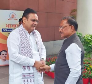 रायपुर/ मुख्यमंत्री श्री विष्णुदेव साय ने आज नई दिल्ली प्रवास के दौरान राजस्थान के मुख्यमंत्री श्री भजनलाल शर्मा से आत्मीय मुलाकात की। इस अवसर पर दोनों मुख्यमंत्रियों के बीच छत्तीसगढ़ और राजस्थान के समग्र विकास, सुशासन के प्रभावी मॉडल, जनकल्याणकारी योजनाओं के बेहतर क्रियान्वयन तथा आपसी सहयोग को और सुदृढ़ करने को लेकर सार्थक चर्चा हुई।