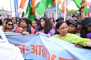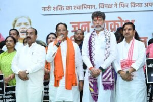 रायपुर। नारी शक्ति वन्दन अधिनियम का विरोध करने वाली कांग्रेस समेत समूचे विपक्ष के खिलाफ प्रदेश की मातृशक्ति ने सोमवार को राजधानी रायपुर में हल्ला बोल कांग्रेस का पुतला दहन किया। भाजपा महिला मोर्चा के नेतृत्व में आज राजधानी रायपुर के इनडोर स्टेडियम से जन आक्रोश पदयात्रा निकाली गई। जन आक्रोश पदयात्रा में हजारों की संख्या में विभिन्न संगठनों से जुड़ीं प्रदेश की हर वर्ग और क्षेत्र से मातृशक्ति जन आक्रोश रैली में शामिल हुई।