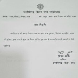 छत्तीसगढ़ विधानसभा का एक दिवसीय विशेष सत्र 30 अप्रैल को