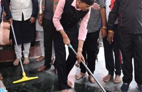 केन्द्रीय मंत्री डॉ. मनसुख मांडविया श्री महामाया मंदिर परिसर में स्वच्छता अभियान में हुए शामिल