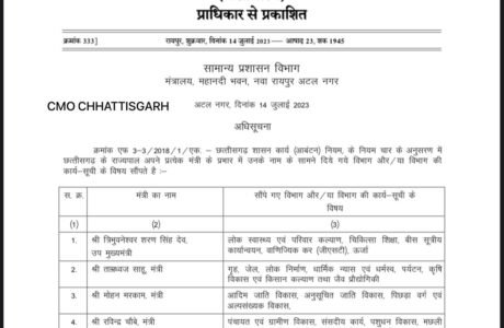 मंत्रियों के विभाग में फेरबदल: उपमुख्यमंत्री सिंहदेव ऊर्जा, चौबे स्कूल शिक्षा और सहकारिता, ताम्रध्वज कृषि और मरकाम संभालेंगे अनुसूचित जाति-जनजाति,अन्य पिछड़ा वर्ग और अल्पसंख्यक कल्याण विभाग