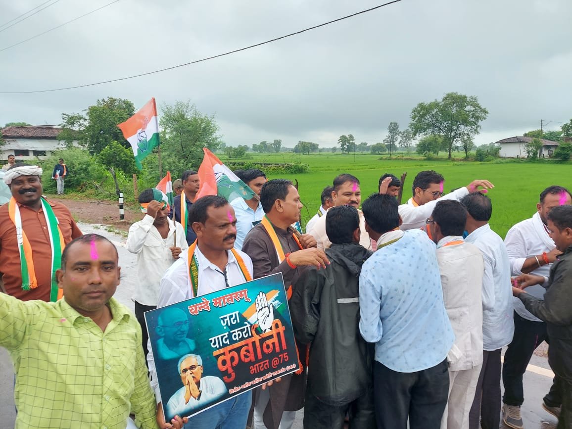 कांग्रेस की भारत जोड़ो पदयात्रा जामगांव आर में जोश-जुनून के साथ निकली, पहले दिन 13 किलोमीटर की पदयात्रा की