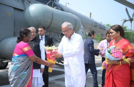 रायपुर/ राष्ट्रपति श्रीमती द्रौपदी मुर्मु आज एक दिवसीय प्रवास पर न्यायधानी बिलासपुर पहुंची। पंडित सुन्दर लाल शर्मा ओपन यूनिवर्सिटी हेलीपेड पर राष्ट्रपति का स्वागत छत्तीसगढ़...