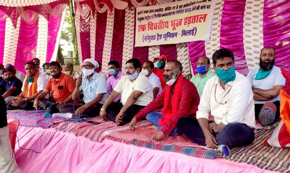 बीएसपी में वेतन समझौते के खिलाफ आंदोलन के दूसरे दिन संयुक्त यूनियन की एक दिवसीय भूख हड़ताल, कल के काम बंद हड़ताल की तैयारियां पूरी