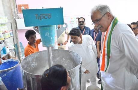 मुख्यमंत्री ने देखी गोबर से पेंट बनाने की प्रक्रिया; हीरापुर जरवाय गौठान में पहुंचे मुख्यमंत्री, महिलाओं से की चर्चा