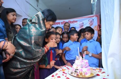 मुख्यमंत्री की धर्मपत्नी ने अपने जन्मदिन पर आयोजित न्योता भोज में अपने हाथों से बनी खीर बच्चों को परोसी