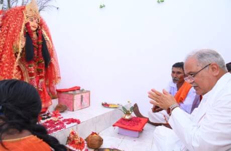 मुख्यमंत्री ने ग्राम भटगांव स्थित चन्द्र मौली माता मंदिर में पूजा अर्चना कर प्रदेशवासियों की खुशहाली और समृद्धि के लिए की कामना