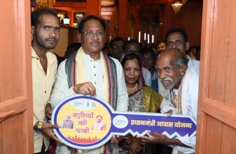 मुख्यमंत्री ने दोकड़ा में पीएम आवास योजना के हितग्राही संतु चक्रेस को चाबी देकर गृह प्रवेश कराया