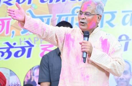 मुख्यमंत्री ने फाग गीत गाकर रायपुर प्रेस क्लब में पत्रकारों के संग मनाई होली