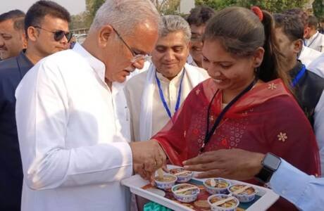 मुख्यमंत्री बघेल ने तेन्दू से बने आइसक्रीम को चखकर स्वाद की सराहना की