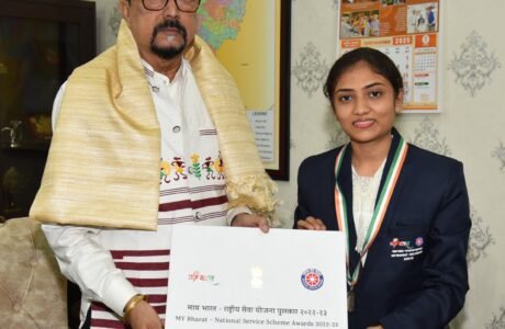 राष्ट्रपति पुरस्कार से सम्मानित एनएसएस की छात्रा लेखनी साहू ने राज्यपाल से की सौजन्य भेंट