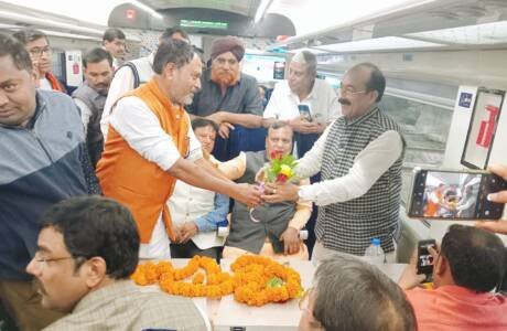 वंदे भारत ट्रेन का भाटापारा स्टेशन पर विधायक शिवरतन शर्मा के नेतृत्व में कार्यकर्ताओं ने किया स्वागत