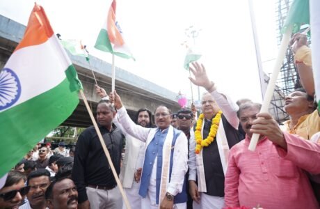 मुख्यमंत्री साय राजनांदगांव में तिरंगा रैली में हुए शामिल, हरी झंडी दिखाकर रैली को किया रवाना