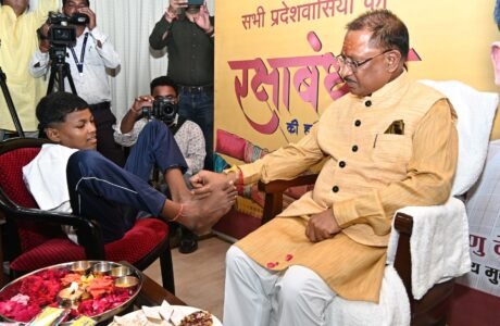 हाथ नहीं, पैरों से मुख्यमंत्री साय को वर्षा ने बांधी राखी